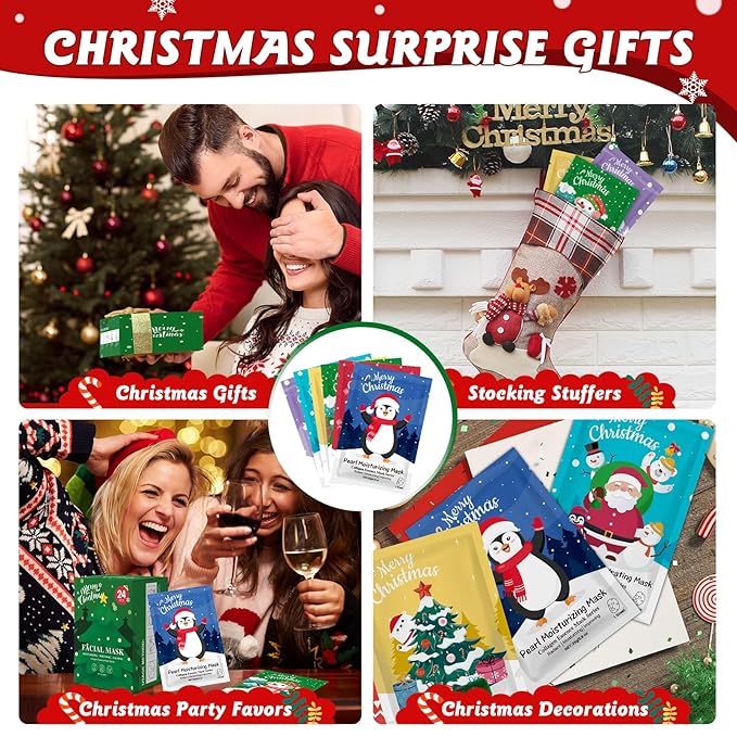 - Perfect for Stocking Stuffers:These Christmas face masks skincare are perfect stocking stuffers,whether it's stuffing them into Christmas stockings or giving them to friends,family or women,they are all ideal Christmas gifts.Sharing these facial mask with friends will leave them a good memory