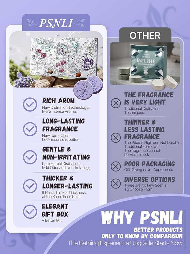 - Aromatherapy Spa at Home - Infused with essential oils, each tablet transforms your shower into a personal spa. Enjoy soothing steam that helps clear your mind, relieve stress, and create a calming atmosphere.