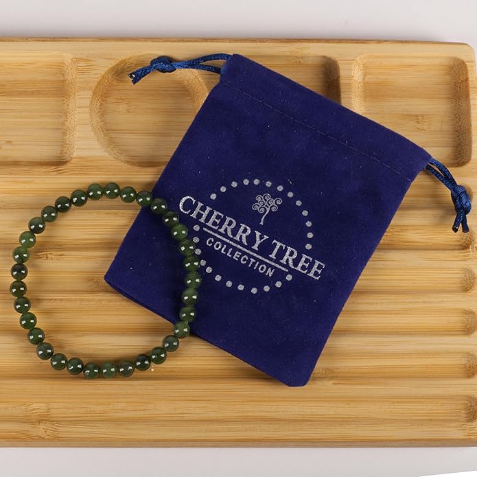 - CONTAINS: A Nephrite bracelet made with 6mm semi-precious beads packaged inside a protective cloth drawstring pouch. Nephrite is one of only 2 types of jade. It is typically green but can also appear in shades of gray, white, yellow, and black.