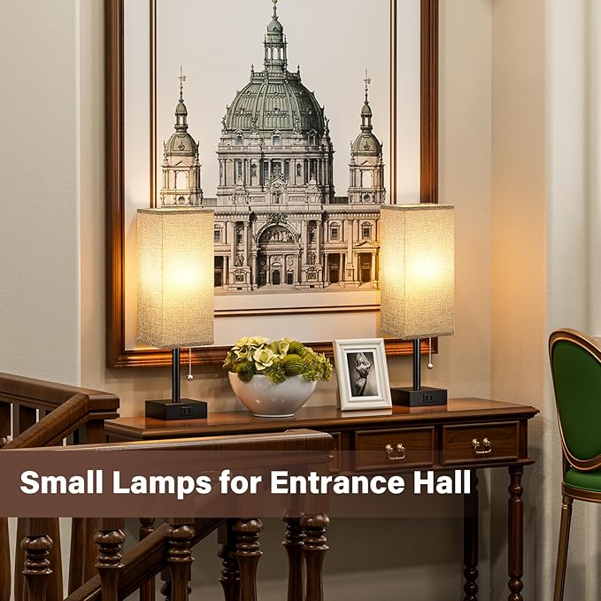 - 4. Plug and Play Chic Bedroom Lamps Set - Package included 2pcs non-flicker FREE E26 led light bulb (worth $15), 2pcs install-free square grey flaxen fabric shade, 2pcs stable lamp body and classic black metal base. Put all together for a minimalism classic lamp is really perfect to decorate anywhere of your house. An ideal tableside lamp for bedroom, guest room, living room, study room, kids room, college dorm room for girls and boys, office room, desk, etc.