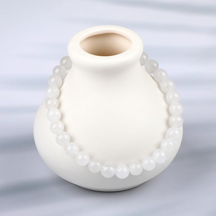- Natural White Jade Healing Bracelet: Beads size 6mm. The length of the elastic handmade bracelet is 7.5 INCHES. No metal design good for sensitive skin.