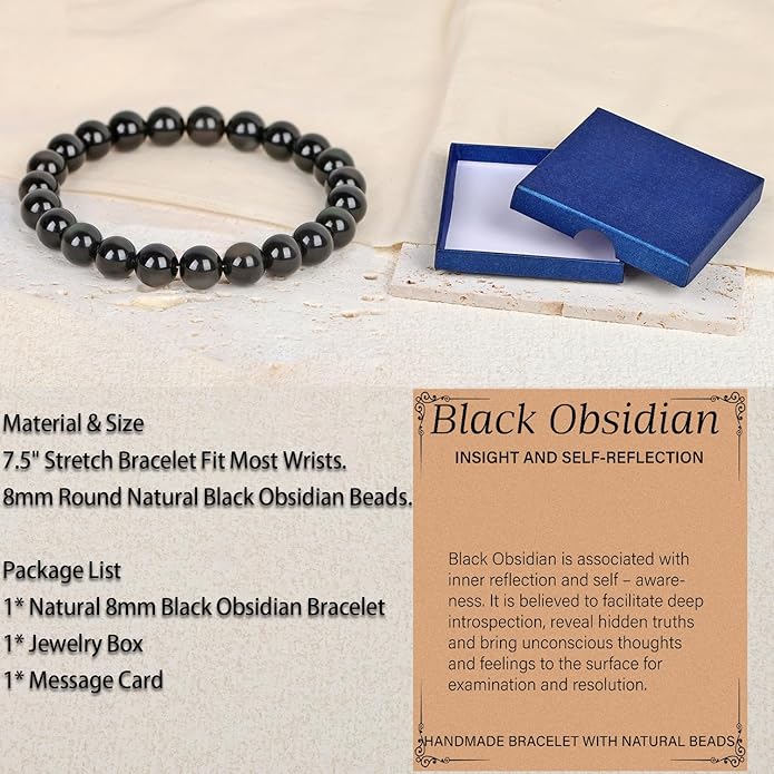 - Perfect Gift: This Black Obsidian crystal bracelet comes with a message card. The bracelet is packaged in a premium jewelry box ready for gift. An exceptional gift for your family, friends and colleagues.