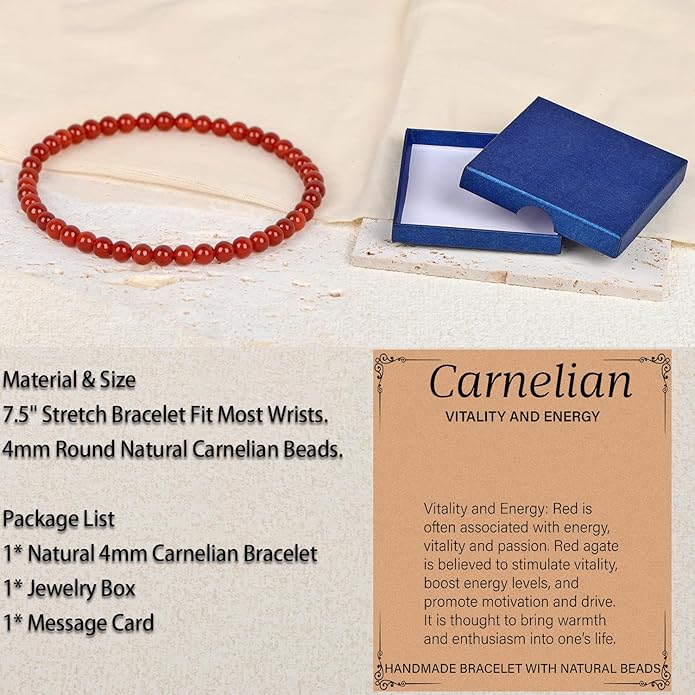 - Perfect Gift: This Red Carnelian crystal bracelet comes with a message card. The bracelet is packaged in a premium jewelry box ready for gift. An exceptional gift for your family, friends and colleagues.