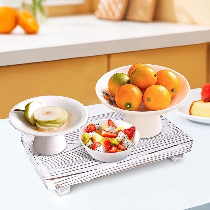Bathroom Counter Tray Wood Pedestal Stand White Kitchen Countertop Trays Decorative Dish Soap Dispenser Holder for Bathroom Sink Accessories Wooden Riser Display Stands Kitchen Decor Vanity Tray