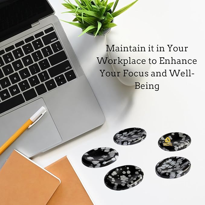 Snowflake Obsidian Worry Stones – Crystal Thumb Worry Stone for Anguish, Stress – Relaxing & Soothing Balance Stones for Meditation, Healing Stones & Crystals for Men, Women
