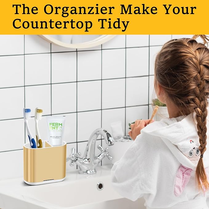 Chintu Toothbrush and Toothpaste Holder with Divider for Bathroom Countertop Organizer, Detachable for Easy Clean,Kids Electric Toothbrush Holders Storage Caddy for Family (Gold)