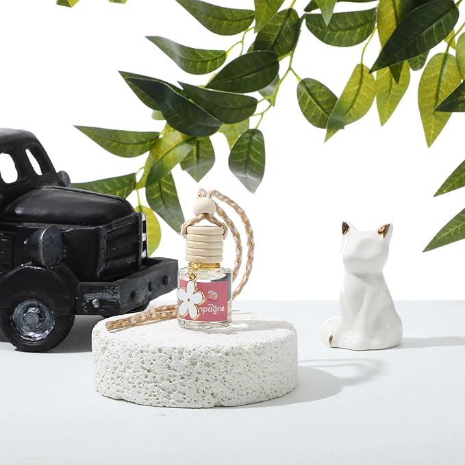 - Unique Fragrance: each bottle of aromatherapy is carefully prepared; Pink champagne aromatherapy exudes the rich and sweet scent of apple, raspberry and rose mixed with musk and vanilla; It can effectively cover up the unpleasant odors in the car, such as gasoline, allowing you to enjoy your driving happily
