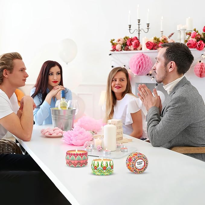 - Aromatherapy Candles for Home: Each small natural soy wax tin candle is the best companion for home parties to enjoy the romantic moment with your families or friends in every important event;