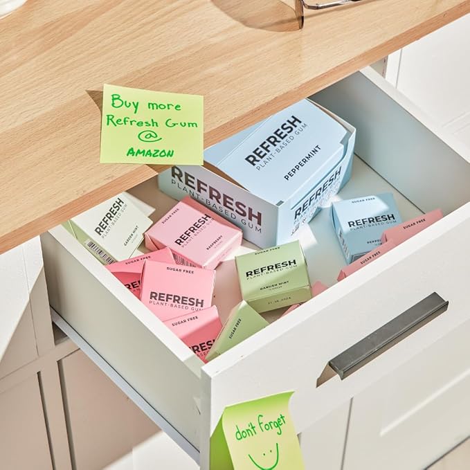 - LONG LASTING FLAVOR WITH NO ARTIFICIAL SWEETENERS: Refresh Gum provides a long-lasting burst of flavor using natural sweeteners like Xylitol and Stevia. Unlike conventional gum, it contains no sugar, preservatives, or artificial additives, delivering a clean, fresh and fruity taste.