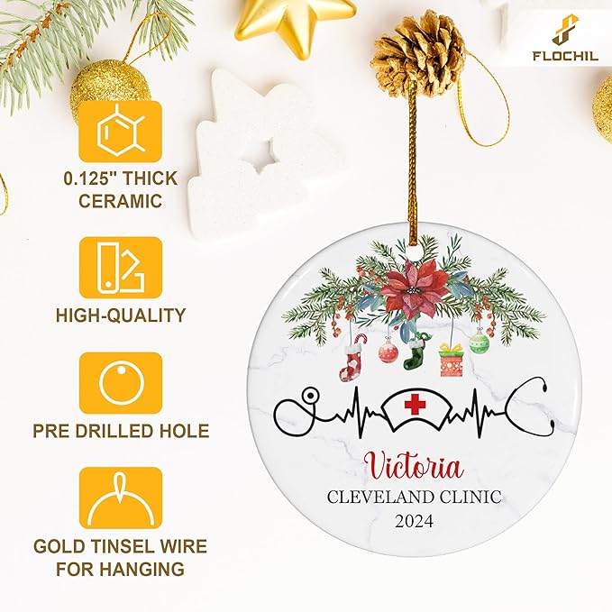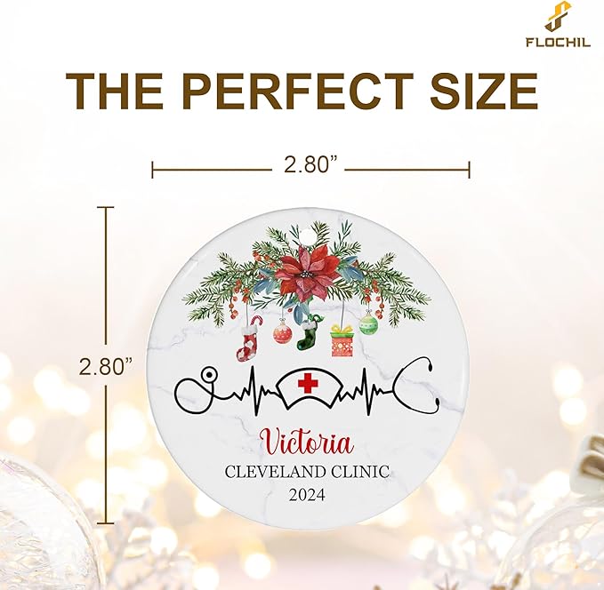 FLOCHIL Personalized Nurses Christmas Ornaments, Custom Ornaments Nurse with Name, Best Nurse Ornament, Gifts for Women, Christmas