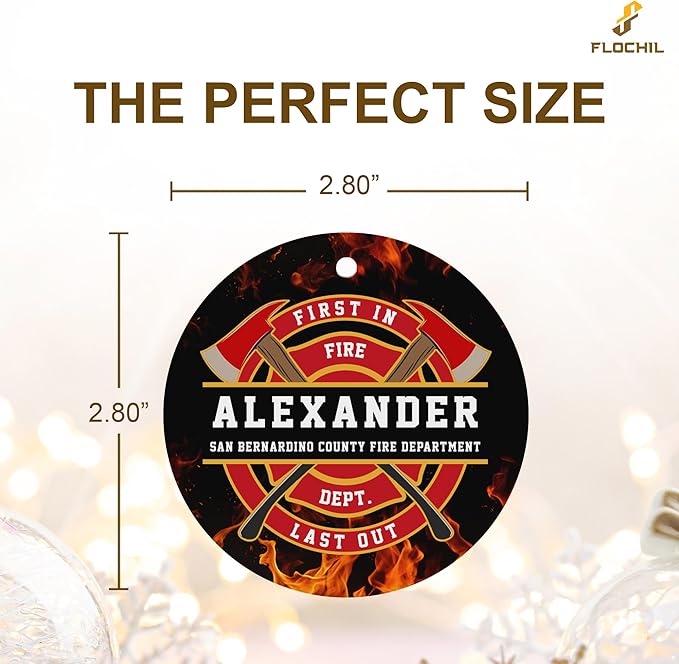 - PERSONALIZED CHRISTMAS ORNAMENTS: Are you looking for a unique and meaningful gift for Firefighter this Christmas? This Personalized Firefighter Ornaments will be the perfect gift for Firefighter, Fireman, Coworkers, Employee, Boss, Leader, Manager, Friend, Men, Women...Hang the personalized christmas ornament on the Christmas tree for a warm Christmas atmosphere that will make you and your family feel happy. Click "CUSTOM NOW" and enter the name or text you want printed on the ornament and complete the order.