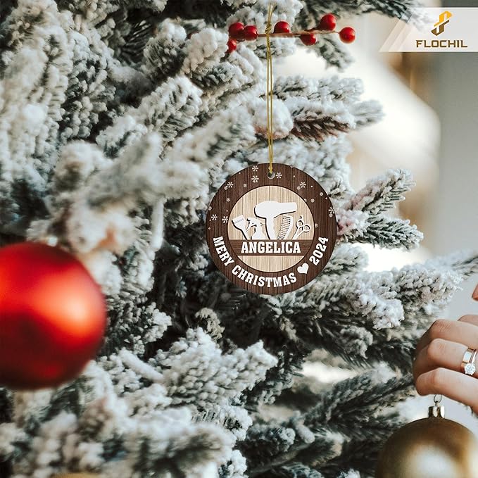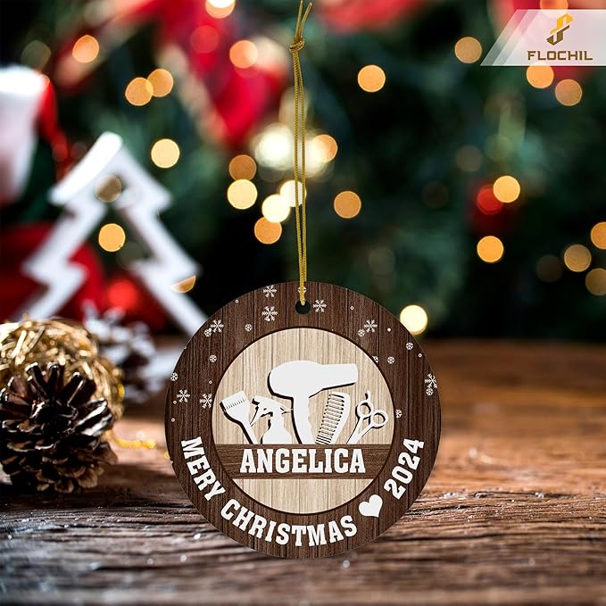 FLOCHIL Personalized Hairstylist Ornament, Custom Hairapist with Name, Hairdresser Ornaments for Christmas Tree, Gifts