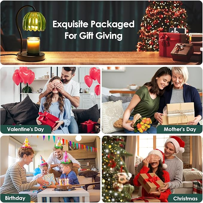 - A Gift That Keeps on Giving: This green glass candle lamp warmer for jar candles is a perfect gift for women on Valentine's Day, Mother's Day, birthdays, Thanksgiving, Christmas, New Year, or housewarming parties. Its stylish design and practical features make it a cherished addition to any home, showing that you truly care about their comfort and well-being.