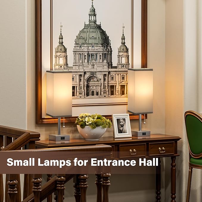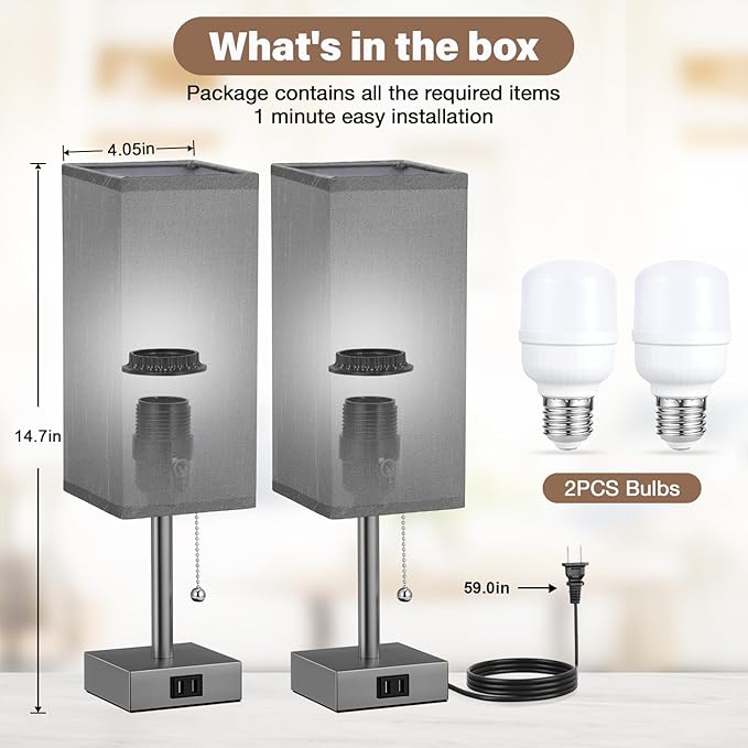 - 4. Plug and Play Chic Bedroom Lamps Set: Package included 2pcs non-flicker FREE E26 led light bulb (worth $15), 2pcs install-free square cream flaxen fabric shade, 2pcs stable lamp body and classic black metal base. Put all together for a minimalism classic lamp is really perfect to decorate anywhere of your house. An ideal tableside lamp for bedroom, guest room, living room, study room, kids room, college dorm room for girls and boys, office room, desk, etc