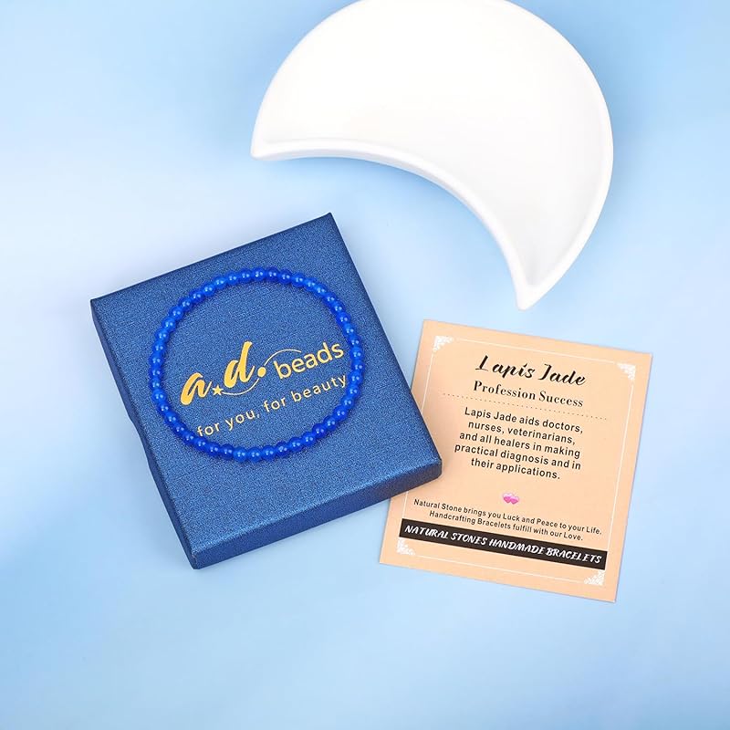 AD Beads Handmade Gemstone Stretch Elastic Bracelet Crystal Healing Reiki Nature's Beauty and Spiritual Essence Unisex (4mm, Blue Lapis Jade (Profession Success))