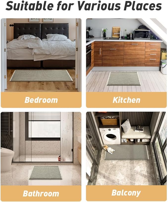 - Comfortable and Soft: Three-dimensional waffle design combined with flexible yarns make the bathroom floor mat softer and cozier. Bring you a comfortable underfoot feeling. Enjoy a comfort space when you finishing shower.
