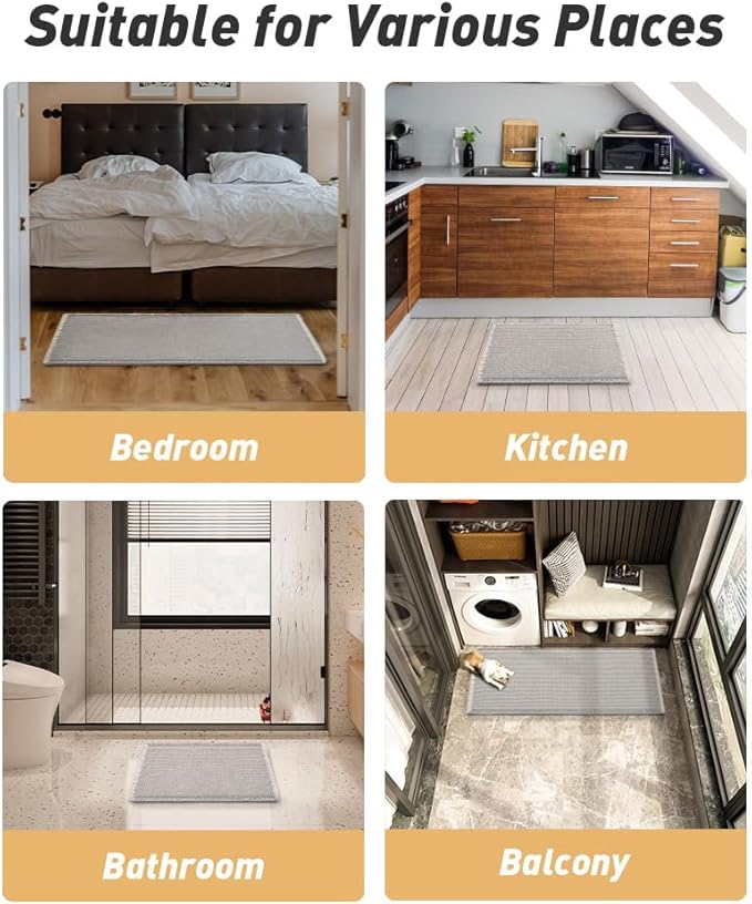 AMOAMI Upgraded Waffle Runner Rug Super Absorbent Non Slip Bath Mats for Bathroom Machine Washable Bathroom Runner Rug with Tassels, Ideal for Hallway Bedroom Laundry Room, 2' x 6', LightGrey & Cream