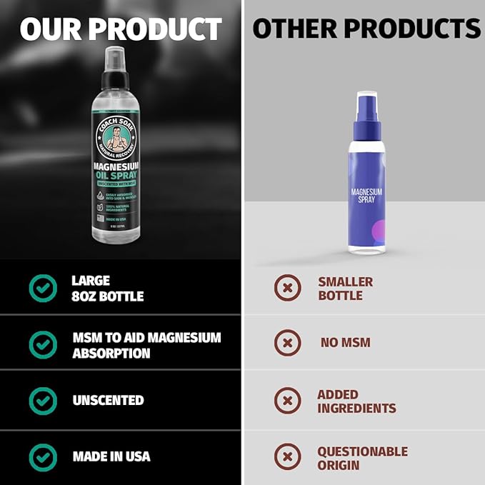 - Quick-Absorbing Oil Spray: Enjoy the efficiency of our unscented magnesium oil spray with MSM, crafted for rapid absorption into your skin. Packaged in a sturdy, refillable 8oz bottle, it provides on-the-go support for your active lifestyle