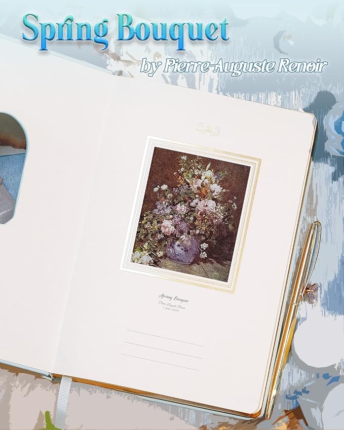 - A Vintage Masterpiece for Every Writer: Indulge in timeless elegance with the hi!SCI Thick Journal. Featuring 360 pages of luxurious gold-edged paper and a stunning artistic window showcasing Spring Bouquet by Pierre-Auguste Renoir, this journal is a true work of art. Whether you're journaling your thoughts, sketching your dreams, or drafting your next big idea, every page offers a perfect canvas for creativity. The unique design ensures that your words are surrounded by beauty, turning every writing session into an artistic experience.
