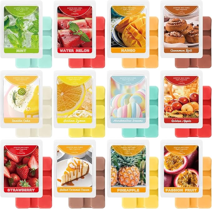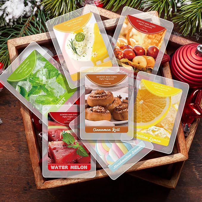 - Food and Fruit Scented Wax Cubes: Each pack weighs 1.25 oz (35 g) and contains 6 cubes. Scented wax cubes offer a fresh, sweet fragrance that fills your space with a fruity and exotic aroma