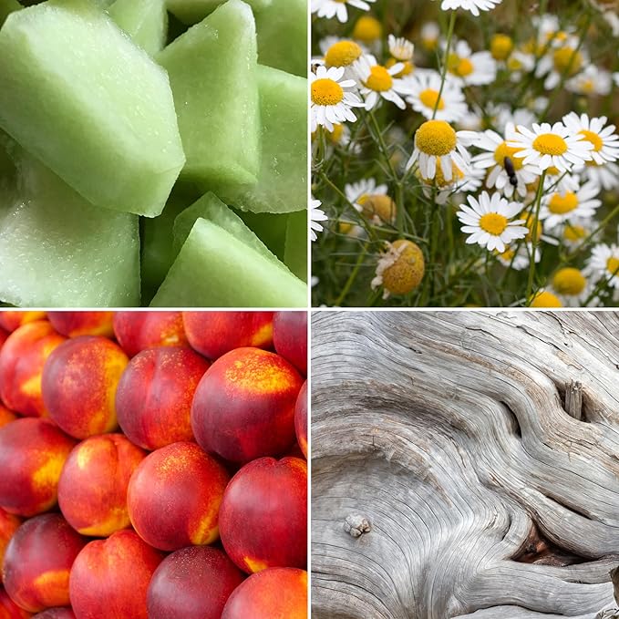 - CHAMOMILE WOODS FRAGRANCE: A calming blend of salt mist, citrus leaves, honeydew melon, chamomile blossom, tonka bean, nectarine skin, sun-bleached driftwood, vanilla sugar, and amber.