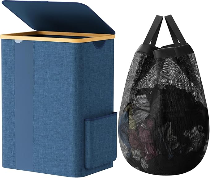 - Ventilated and Functional: The foldable clothes hamper is made of premium, thick and breathable fabric, ensuring longevity and durability. It features a viewable window to see contents without opening the lid and includes a removable mesh inner bag to eliminate odors. A side pocket is provided for separating socks