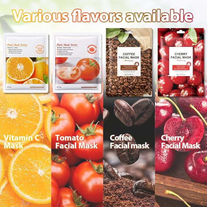 - Easy to Use: The sheet masks are suitable for all skin types, Each sheet mask is individually packaged, making it convenient to carry and use anytime, anywhere.