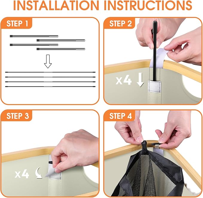 - Collapsible and Freestanding Design: This laundry hamper with lid features 4 detachable rods, allowing for easy assembly and folding. When not in use, it collapses to just 1.21 inches high, making it t for storage in a closet or suitcase