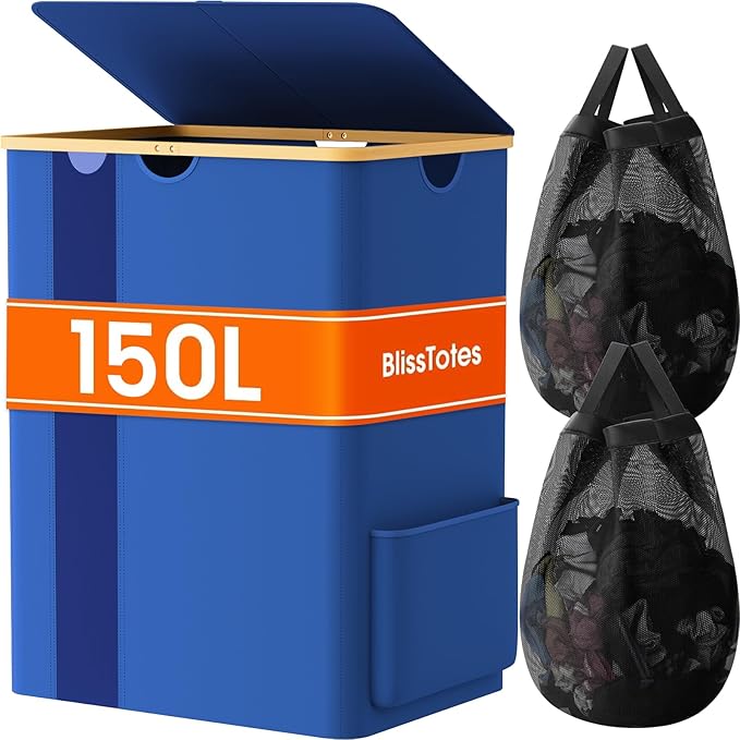 - Large and Multiple Capacity: The laundry hamper is 21" x 15.8" x 27.6" (L x W x H) and has a 150 L capacity, while additional options include 80L and 100L sizes. This range ensures you can find the ideal fit for your laundry requirements, whether you have a small apartment or a large family home