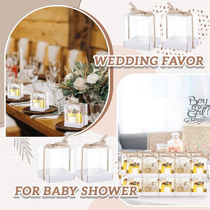 - Elegant Color and Size: Each of our candle boxes predominantly features a white that harmonizes with multiple events or occasions. The box also offers a transparent window to display your gift, with ample space, approximately 3.54 x 3.54 x 4.33 inches/ 9 x 9 x 11 cm, ideal for accommodating gifts for various parties