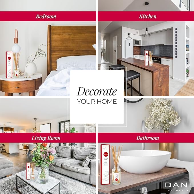 DANI Naturals Reed Diffuser Set - Citrus Rose Scent - Aromatherapy Essential Oils - Alcohol-Free, Non-Toxic, Eco-Friendly, 10 Reeds - 3.5 oz