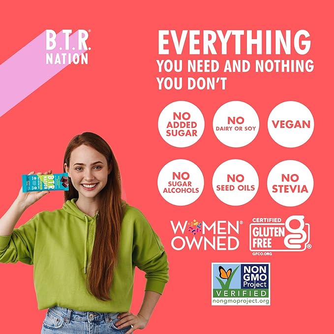 - ✅ NO JUNK, EVER. WE PROMISE: B.T.R. Bars are Non-GMO, Gluten-Free protein bars, Dairy-Free protein bars, and Soy-Free with a 100% Clean Label. No sugar alcohols, no stevia, no gums or emulsifiers, and no flavors (not even so-called “natural flavors”)