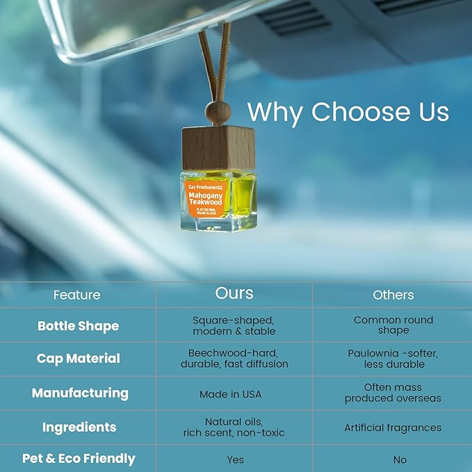 - 【Safe, Non-Toxic & Pet-Friendly】Proudly made in the USA from pure essential oils, our formula is non-toxic, chemical-free, and safe for pets. It effectively neutralizes odors and works with your car’s air flow to continuously improve air quality—making every breath cleaner and every journey more enjoyable.