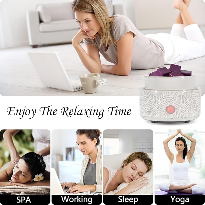 - 【Easy to Operate】Ceramic scented wax melt has a removable wax melting tray to heat the wax directly on it very easy to operate and safe to use, please note that please do not let children or pets directly touch the product being used.