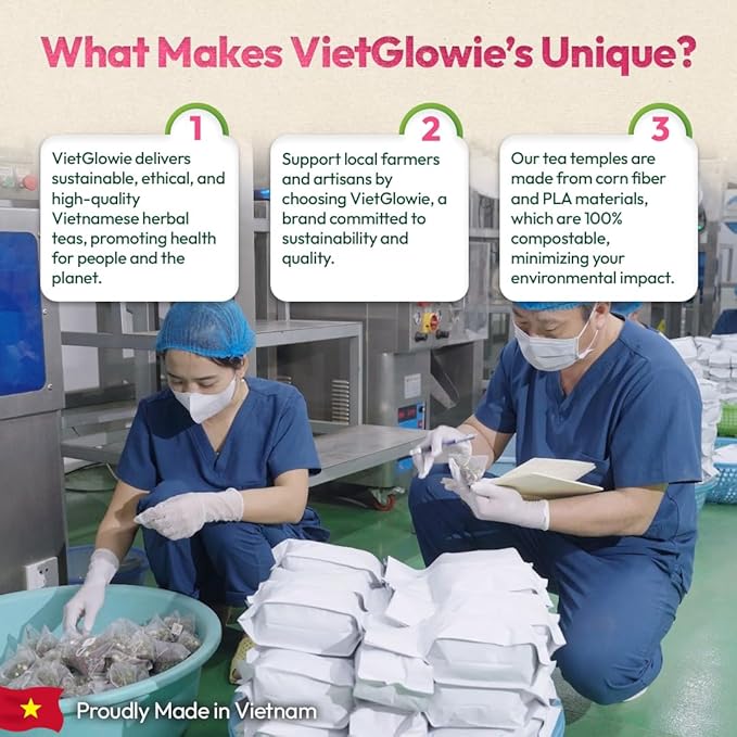 VietGlowie 20 Chamomile Blend Pyramid Tea Bags, 11.5g/Bag to 33oz, Chamomile, Lavender, Brown Rice, Stevia, Bedtime Tea, Sleep Support Herbal Tea, Caffeine-Free, 100% Natural, Corn-Based Tea Bags