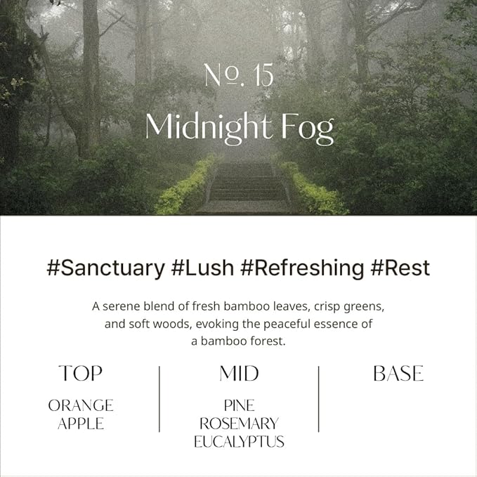 - MIDNIGHT FOG SCENT: Walk through a forest drenched in dawn fog with the Midnight Fog diffuser. It combines the scents of moss, cold stones, and a refreshing bitterness, offering a calming and cleansing experience that soothes the mind.