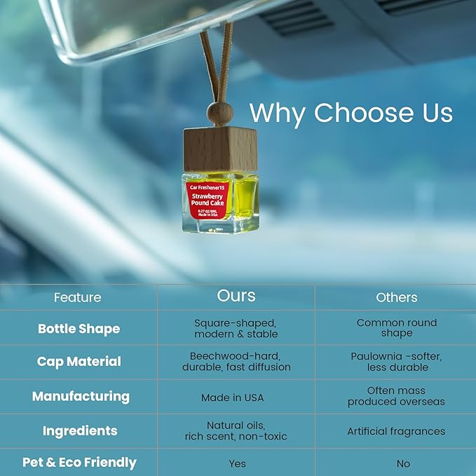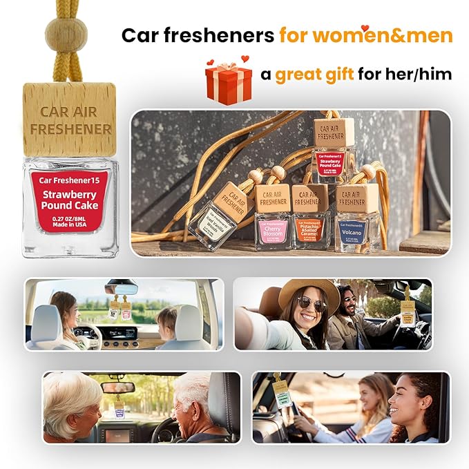 - 【Elegant Design with Premium Materials】More than a car fragrance—this is a piece of décor. Choose from sleek square glass bottles or diamond-cut designs that sparkle in the light. Each cap is crafted from pine or beech wood for better heat resistance and superior scent diffusion compared to ordinary round caps, ensuring even fragrance release.