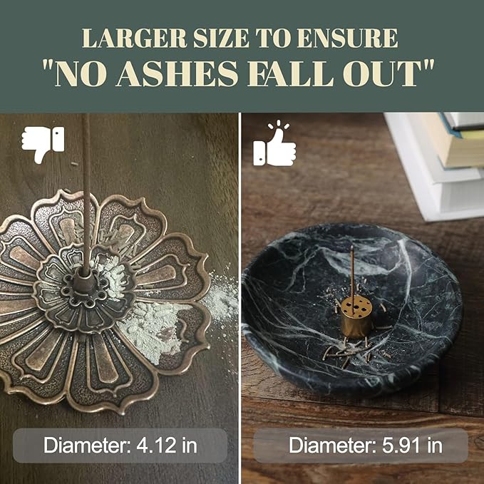 - 【Catch All the Incense Ash】The wider 5.91" diameter makes it catch ash easier.The surface of the incense burner is smooth and washable, very easy to clean.Can be widely used in living room, bedroom, study, meditation room, yoga room, etc
