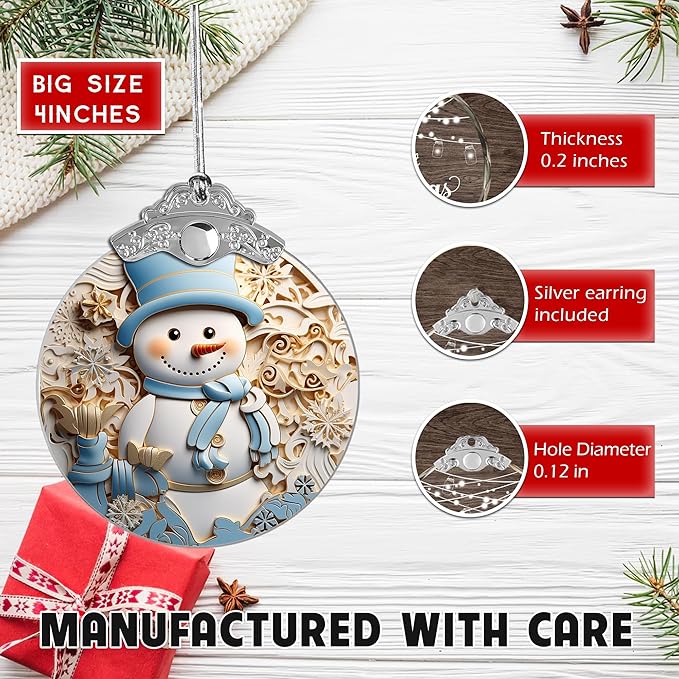 2025 Christmas Ornament, Stained Glass Effections, Christmas Tree 4 Inch Acrylic Ornament Art, White Elephant Gifts for Adults, Christmas Decorations (Blue hat Snowman)