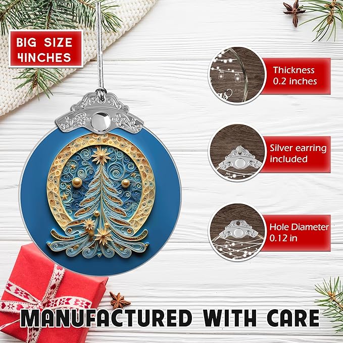 2025 Christmas Ornament, Stained Glass Effections, Christmas Tree 4 Inch Acrylic Ornament Art, White Elephant Gifts Car Interiors Decors, Christmas Decor (Quilling Tree 3)