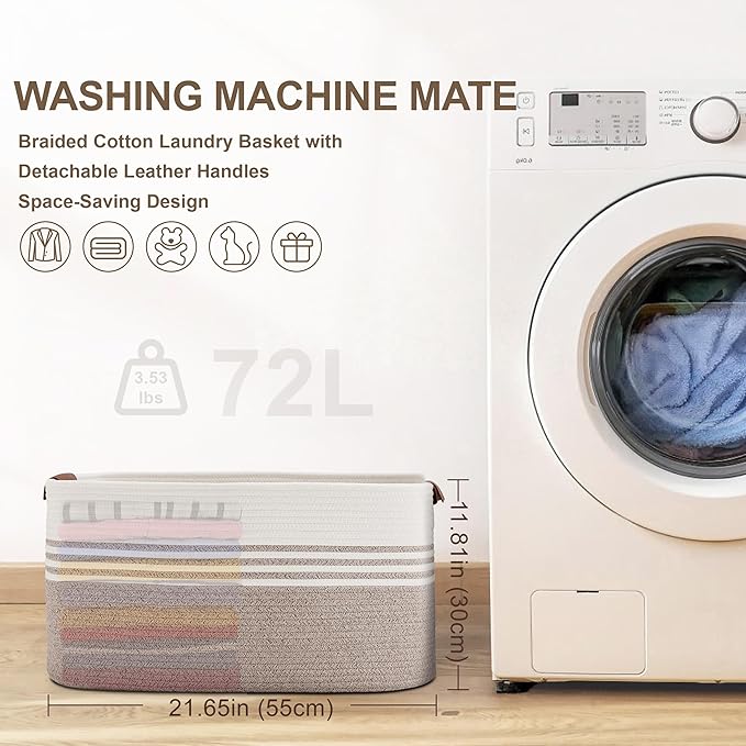 - HOUSEHOLD STORAGE SOLUTION: 72L oversized basket. The extra large basket can hold the entire family's daily laundry and can be used as a toy storage basket, a baby laundry basket, a nursery laundry basket, a blanket/throw storage for living room or a towel basket for bathroom