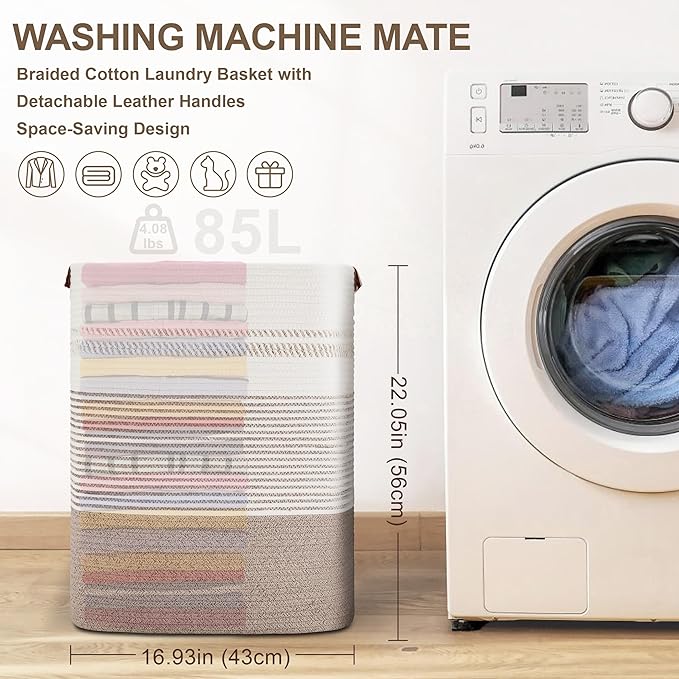 - HOUSEHOLD STORAGE SOLUTION: 85L oversized basket. The extra large basket can hold the entire family's daily laundry and can be used as a toy storage basket, a baby laundry basket, a nursery laundry basket, a blanket/throw storage for living room or a towel basket for bathroom