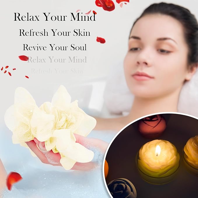 - The Perfect Bath Set Gift With Scented Candles: When you return home after finishing your day's itinerary, a pure natural bath ball paired with aromatherapy candles,As the rich bubbles envelop you, you are immersed in a relaxing bathing experience. Use our premium bath balls for a fun relaxing time in the comfort of your own home.