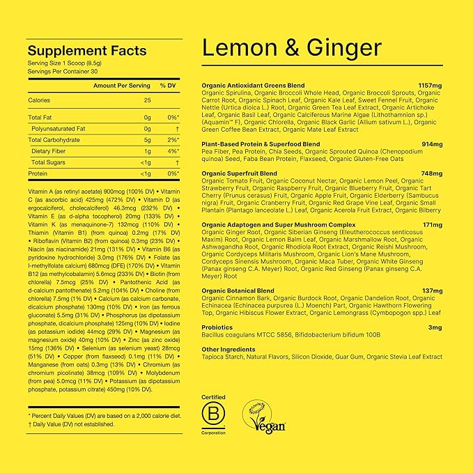 - GROWN BY NATURE, BLENDED BY SCIENCE: Comprised of 5 key blends including Organic Super Greens, Organic Superfruit Blend, Super Mushroom Adaptogen Blend, Plant-Based Protein and Organic Botanicals