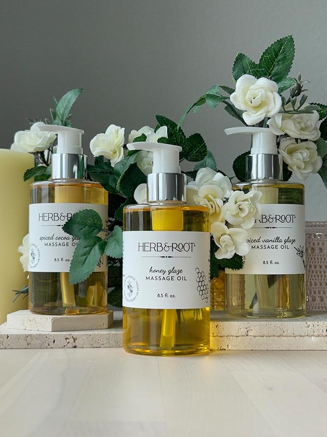 - Let the sweet scent of Spiced Vanilla Glaze Massage Oil whisk you away while providing aromatherapy benefits & unparalleled relaxation. Our all natural massage oil is the perfect way to make your next massage more luxurious.