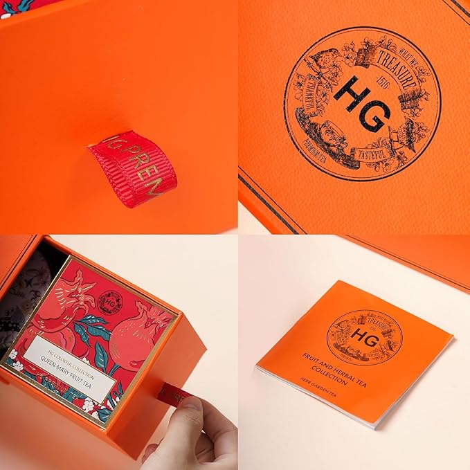 - Elegant Premium Tea Gift Box: Features a vibrant embossed leather texture in orange with a drawer-style design for easy access and freshness. A luxurious gift for tea lovers.