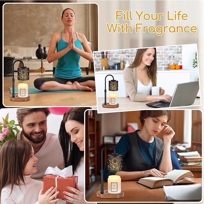 - Timer and Dimmable: The electric candle warmer melts candle and wax from the top down using a 50W halogen bulb for fast and efficient fragrance distribution. With dimmer control of the aesthetic home decor lamp candle warmer, you can adjust the melting speed. The brighter the setting, the faster it melts. Also, you can set the 2/4/8 hours Auto-off function on this candle warmer lamp with timer.