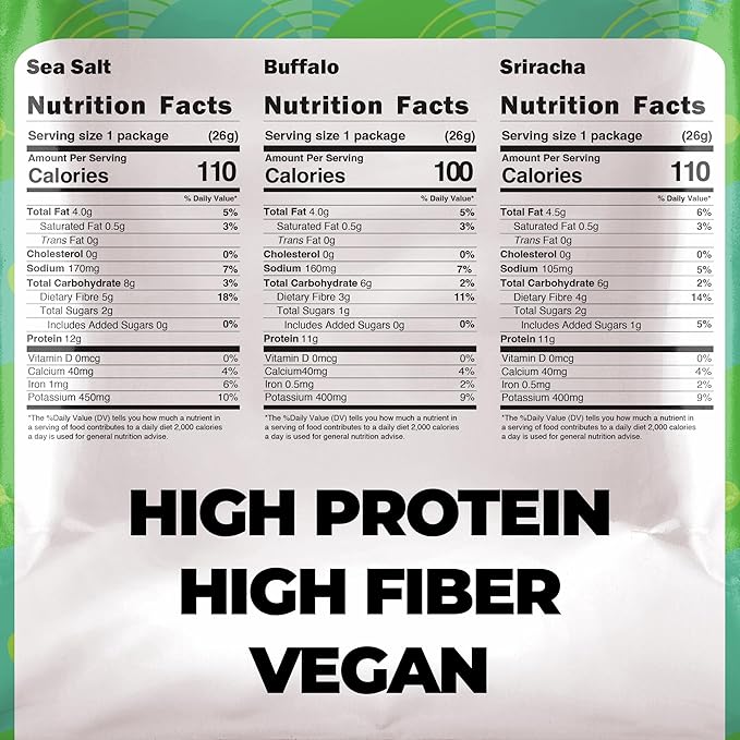 - Flavor : Sea Salt, Sriracha, Buffalo