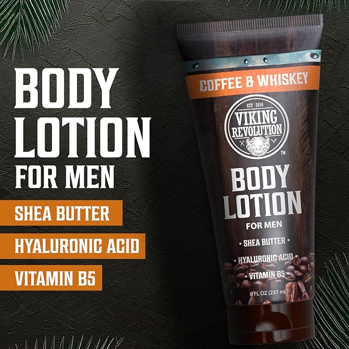 Viking Revolution Coffee Whiskey Body Lotion for Men –Mens Lotion for Dry Skin with Shea Butter, Hyaluronic Acid and Vitamin B5 – Nourishing Mens Body Lotion for Hydrated and Smooth Skin (8oz, 1 Pack)