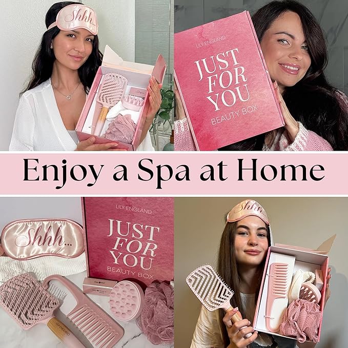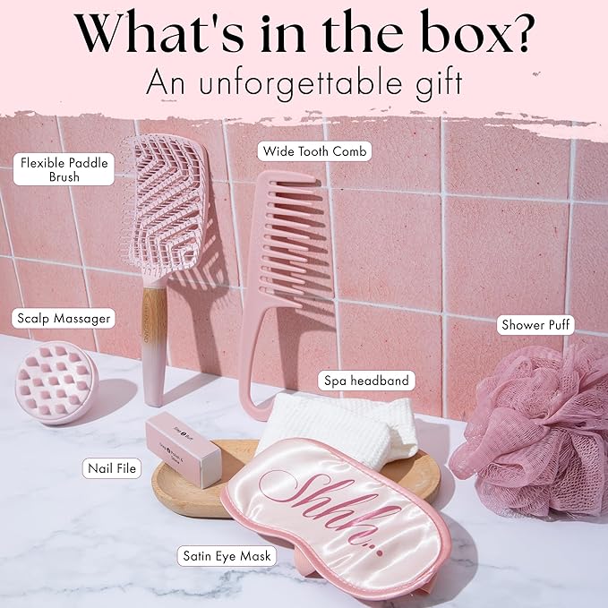 - Pampering Womens Gift for Christmas: Transform your self-care routine with our deluxe spa gift set for women featuring a gentle Flexi paddle brush, shower-safe detangling comb, salon-grade 4-sided nail file & silky eye mask for relaxing me-time